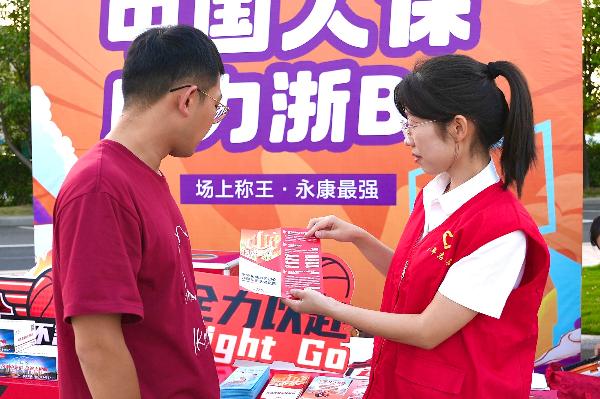 赛事期间,支公司组织“党员突击队”及员工深入赛场加油助威,并在场外设宣传服务展位,通过趣味抽奖、发放宣传折页、面对面讲解等形式,向广大观赛群众普及防范电信诈骗、反洗钱、消费者权益保护等金融知识,有效提升公众风险防范意识。同时,积极介绍“人人安康”、“安心骑”、团体意外险、长护险等普惠保险产品,吸引不少市民驻足咨询,现场互动热烈、氛围高涨。