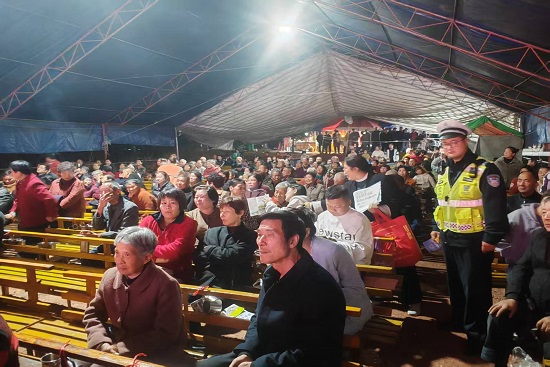 11月4日晚,罗店镇紫岩殿村文化广场上坐满了前来观影的村民,趁着这一村民集中的有利契机,人保财险金华婺城支公司罗店营销服务部联合当地交警部门,将警保联动“服务直通车”开进现场,为村民们送上实用的安全保障“干货”。