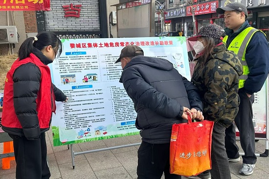 活动现场,工作人员通过设置咨询台、摆放宣传展架、发放政策手册、面对面答疑等形式,向村民细致解读婺城区集体土地危房常态化治理改造的申请条件、补助标准、办理流程等关键信息,帮助群众清晰了解政策红利、明晰办理路径,推动危房改造惠民政策精准落地,切实解决农村群众住房安全“急难愁盼”问题。